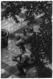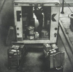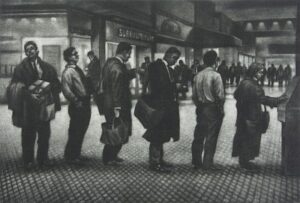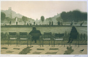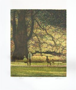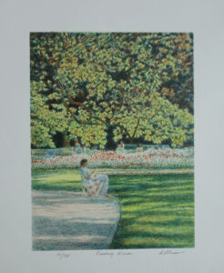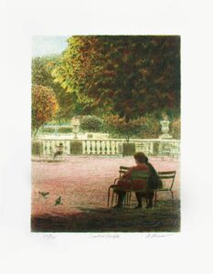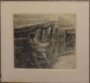 Newspaper Readers, artist proof. Very rare. Circa late 1950's